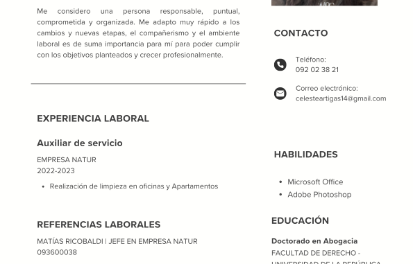 Este anuncio ha sido redactado de forma independiente por el usuario. CVUruguay.com no tiene vinculación con la publicación de los datos personales, y actúa únicamente como canal de difusión gratuito, donde cada usuario es responsable de la información personal que hace pública.